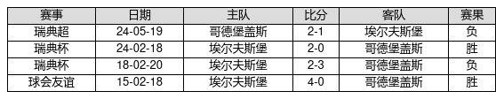 埃尔夫斯堡 VS 哥德堡盖斯两队近10年的交战次数为4场,埃尔夫斯堡2胜0平2负,赢球概率为50.0%,平局概率为0.0%,输球概率为50.0%。