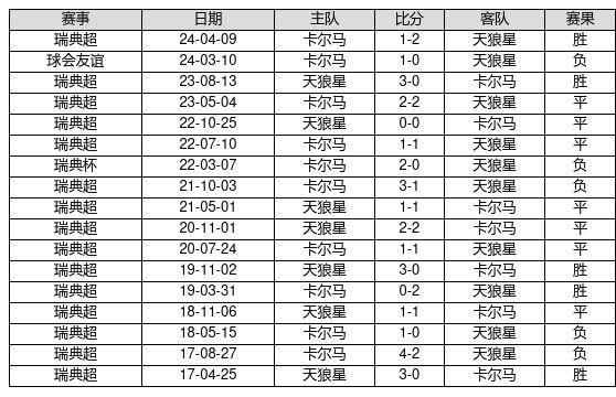 天狼星 VS 卡尔马两队近10年的交战次数为17场,天狼星5胜7平5负,赢球概率为29.4%,平局概率为41.2%,输球概率为29.4%。