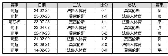 法鲁人体育 VS 莫雷伦斯两队近10年的交战次数为8场,法鲁人体育1胜2平5负,赢球概率为12.5%,平局概率为25.0%,输球概率为62.5%。