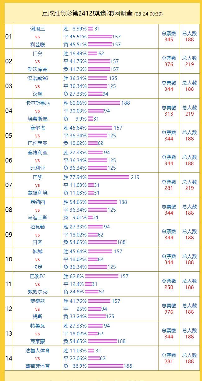 投票调查:大巴黎支持率77% 巴黎FC主胜热度高