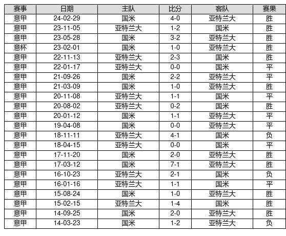 国米 VS 亚特兰大两队近10年的交战次数为22场,国米12胜7平3负,赢球概率为54.5%,平局概率为31.8%,输球概率为13.6%。