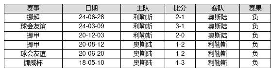 奥斯陆 VS 利勒斯两队近10年的交战次数为6场,奥斯陆0胜0平6负,赢球概率为0.0%,平局概率为0.0%,输球概率为100.0%。