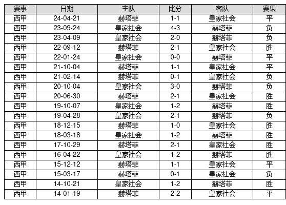 赫塔菲 VS 皇家社会两队近10年的交战次数为19场,赫塔菲8胜5平6负,赢球概率为42.1%,平局概率为26.3%,输球概率为31.6%。