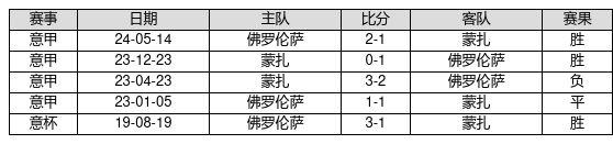 佛罗伦萨 VS 蒙扎两队近10年的交战次数为5场,佛罗伦萨3胜1平1负,赢球概率为60.0%,平局概率为20.0%,输球概率为20.0%。