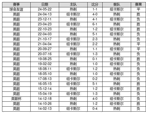 纽卡斯尔 VS 热刺两队近10年的交战次数为21场,纽卡斯尔7胜3平11负,赢球概率为33.3%,平局概率为14.3%,输球概率为52.4%。