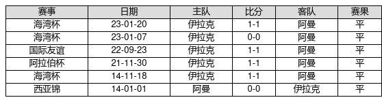 伊拉克 VS 阿曼两队近10年的交战次数为6场,伊拉克0胜6平0负,赢球概率为0.0%,平局概率为100.0%,输球概率为0.0%。
