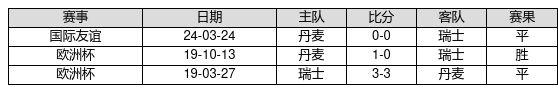 丹麦 VS 瑞士两队近10年的交战次数为3场,丹麦1胜2平0负,赢球概率为33.3%,平局概率为66.7%,输球概率为0.0%。