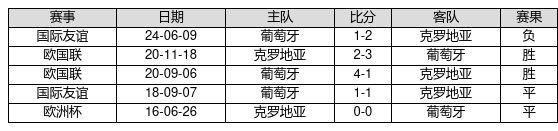 葡萄牙 VS 克罗地亚两队近10年的交战次数为5场,葡萄牙2胜2平1负,赢球概率为40.0%,平局概率为40.0%,输球概率为20.0%。