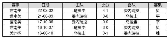 委内瑞拉 VS 乌拉圭两队近10年的交战次数为5场,委内瑞拉1胜2平2负,赢球概率为20.0%,平局概率为40.0%,输球概率为40.0%。
