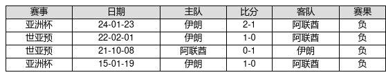 阿联酋 VS 伊朗两队近10年的交战次数为4场,阿联酋0胜0平4负,赢球概率为0.0%,平局概率为0.0%,输球概率为100.0%。