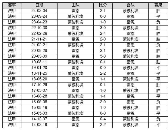 雷恩 VS 蒙彼利埃两队近10年的交战次数为21场,雷恩10胜7平4负,赢球概率为47.6%,平局概率为33.3%,输球概率为19.0%。