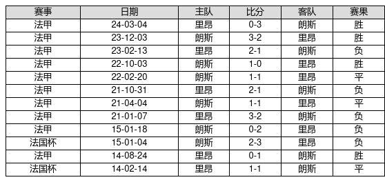 朗斯 VS 里昂两队近10年的交战次数为12场,朗斯4胜3平5负,赢球概率为33.3%,平局概率为25.0%,输球概率为41.7%。