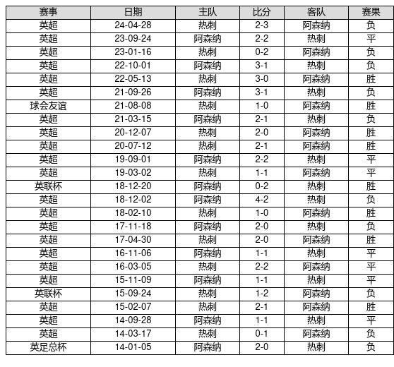 热刺 VS 阿森纳两队近10年的交战次数为25场,热刺8胜7平10负,赢球概率为32.0%,平局概率为28.0%,输球概率为40.0%。
