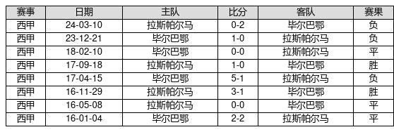 拉斯帕尔马 VS 毕尔巴鄂两队近10年的交战次数为8场,拉斯帕尔马2胜3平3负,赢球概率为25.0%,平局概率为37.5%,输球概率为37.5%。