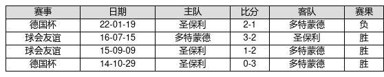 多特蒙德 VS 圣保利两队近10年的交战次数为4场,多特蒙德3胜0平1负,赢球概率为75.0%,平局概率为0.0%,输球概率为25.0%。