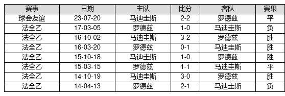 马迪圭斯 VS 罗德兹两队近10年的交战次数为8场,马迪圭斯4胜2平2负,赢球概率为50.0%,平局概率为25.0%,输球概率为25.0%。
