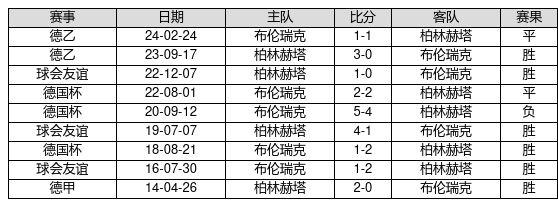 柏林赫塔 VS 布伦瑞克两队近10年的交战次数为9场,柏林赫塔6胜2平1负,赢球概率为66.7%,平局概率为22.2%,输球概率为11.1%。