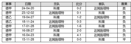达姆施塔特 VS 科隆两队近10年的交战次数为8场,达姆施塔特2胜1平5负,赢球概率为25.0%,平局概率为12.5%,输球概率为62.5%。
