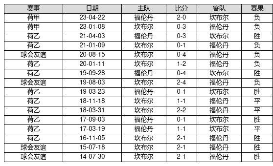 坎布尔 VS 福伦丹两队近10年的交战次数为16场,坎布尔7胜3平6负,赢球概率为43.8%,平局概率为18.8%,输球概率为37.5%。