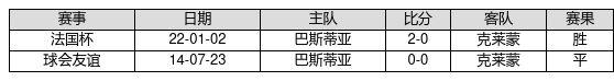 巴斯蒂亚 VS 克莱蒙两队近10年的交战次数为2场,巴斯蒂亚1胜1平0负,赢球概率为50.0%,平局概率为50.0%,输球概率为0.0%。