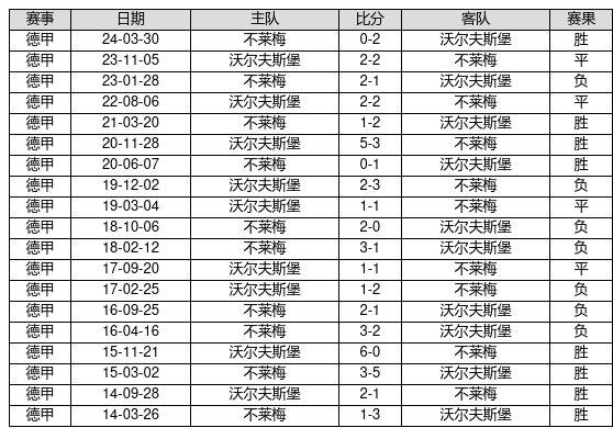 沃尔夫斯堡 VS 不莱梅两队近10年的交战次数为19场,沃尔夫斯堡8胜4平7负,赢球概率为42.1%,平局概率为21.1%,输球概率为36.8%。