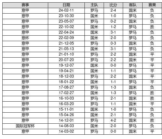 罗马 VS 国米两队近10年的交战次数为23场,罗马4胜8平11负,赢球概率为17.4%,平局概率为34.8%,输球概率为47.8%。