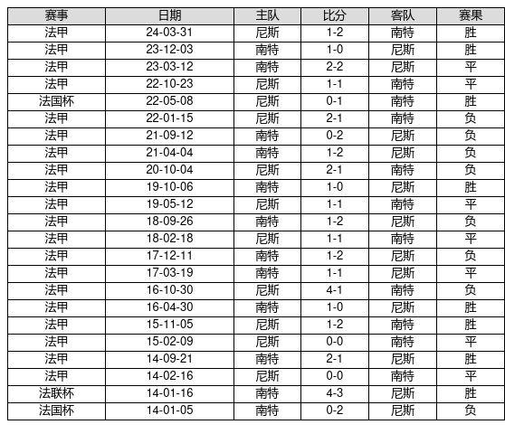 南特 VS 尼斯两队近10年的交战次数为23场,南特8胜7平8负,赢球概率为34.8%,平局概率为30.4%,输球概率为34.8%。