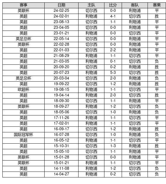 利物浦 VS 切尔西两队近10年的交战次数为30场,利物浦7胜16平7负,赢球概率为23.3%,平局概率为53.3%,输球概率为23.3%。