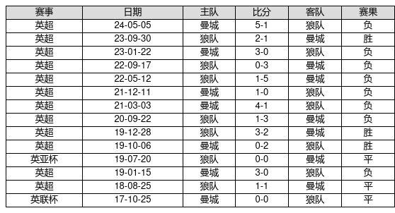 狼队 VS 曼城两队近10年的交战次数为14场,狼队3胜3平8负,赢球概率为21.4%,平局概率为21.4%,输球概率为57.1%。