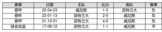 威尼斯 VS 亚特兰大两队近10年的交战次数为4场,威尼斯0胜1平3负,赢球概率为0.0%,平局概率为25.0%,输球概率为75.0%。