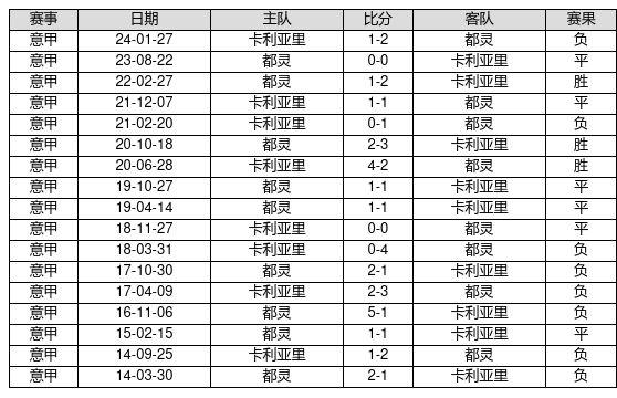 卡利亚里 VS 都灵两队近10年的交战次数为17场,卡利亚里3胜6平8负,赢球概率为17.6%,平局概率为35.3%,输球概率为47.1%。