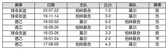 基尔 VS 柏林联合两队近10年的交战次数为7场,基尔2胜1平4负,赢球概率为28.6%,平局概率为14.3%,输球概率为57.1%。