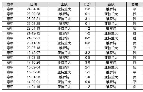 亚特兰大 VS 维罗纳两队近10年的交战次数为17场,亚特兰大8胜4平5负,赢球概率为47.1%,平局概率为23.5%,输球概率为29.4%。