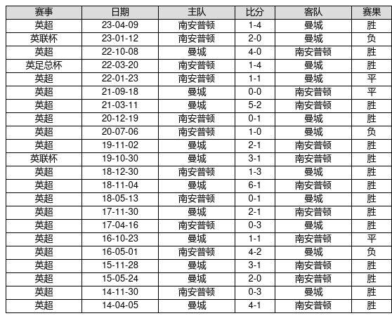 曼城 VS 南安普顿两队近10年的交战次数为22场,曼城16胜3平3负,赢球概率为72.7%,平局概率为13.6%,输球概率为13.6%。