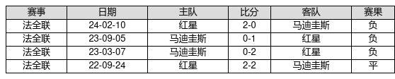 马迪圭斯 VS 红星两队近10年的交战次数为4场,马迪圭斯0胜1平3负,赢球概率为0.0%,平局概率为25.0%,输球概率为75.0%。