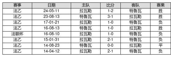 特鲁瓦 VS 拉瓦勒两队近10年的交战次数为8场,特鲁瓦3胜1平4负,赢球概率为37.5%,平局概率为12.5%,输球概率为50.0%。