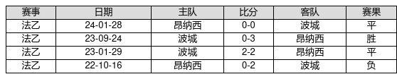 昂纳西 VS 波城两队近10年的交战次数为4场,昂纳西1胜2平1负,赢球概率为25.0%,平局概率为50.0%,输球概率为25.0%。