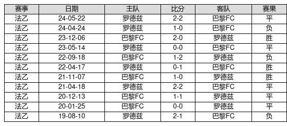 巴黎FC VS 罗德兹两队近10年的交战次数为11场,巴黎FC3胜5平3负,赢球概率为27.3%,平局概率为45.5%,输球概率为27.3%。