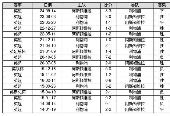 利物浦 VS 阿斯顿维拉两队近10年的交战次数为18场,利物浦11胜3平4负,赢球概率为61.1%,平局概率为16.7%,输球概率为22.2%。