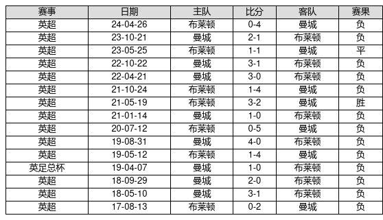 布莱顿 VS 曼城两队近10年的交战次数为15场,布莱顿1胜1平13负,赢球概率为6.7%,平局概率为6.7%,输球概率为86.7%。