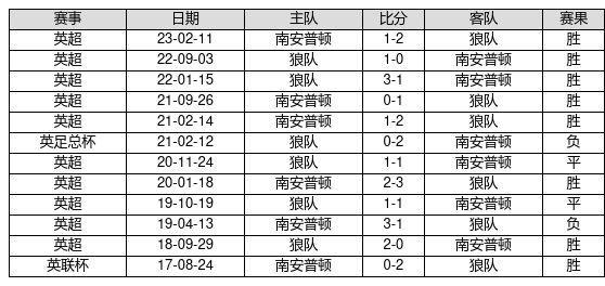 狼队 VS 南安普顿两队近10年的交战次数为12场,狼队8胜2平2负,赢球概率为66.7%,平局概率为16.7%,输球概率为16.7%。