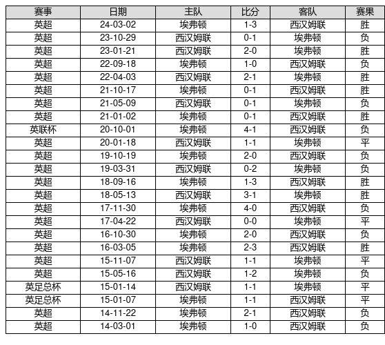 西汉姆联 VS 埃弗顿两队近10年的交战次数为24场,西汉姆联8胜5平11负,赢球概率为33.3%,平局概率为20.8%,输球概率为45.8%。