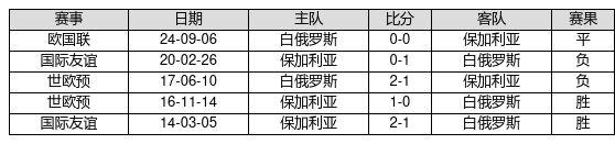 保加利亚 VS 白俄罗斯两队近10年的交战次数为5场,保加利亚2胜1平2负,赢球概率为40.0%,平局概率为20.0%,输球概率为40.0%。