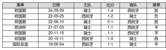 西班牙 VS 瑞士两队近10年的交战次数为7场,西班牙3胜3平1负,赢球概率为42.9%,平局概率为42.9%,输球概率为14.3%。