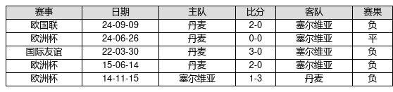 塞尔维亚 VS 丹麦两队近10年的交战次数为5场,塞尔维亚0胜1平4负,赢球概率为0.0%,平局概率为20.0%,输球概率为80.0%。