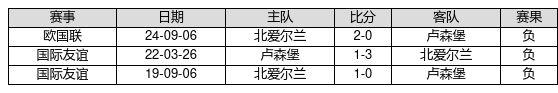 卢森堡 VS 北爱尔兰两队近10年的交战次数为3场,卢森堡0胜0平3负,赢球概率为0.0%,平局概率为0.0%,输球概率为100.0%。
