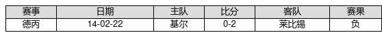 基尔 VS 莱比锡两队近10年的交战次数为1场,基尔0胜0平1负,赢球概率为0.0%,平局概率为0.0%,输球概率为100.0%。