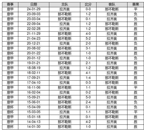 那不勒斯 VS 拉齐奥两队近10年的交战次数为25场,那不勒斯16胜3平6负,赢球概率为64.0%,平局概率为12.0%,输球概率为24.0%。