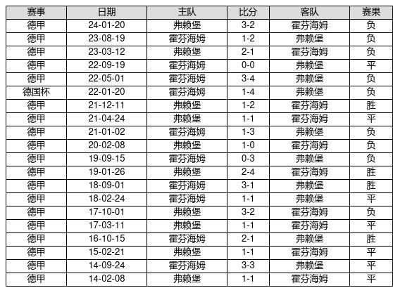 霍芬海姆 VS 弗赖堡两队近10年的交战次数为20场,霍芬海姆4胜7平9负,赢球概率为20.0%,平局概率为35.0%,输球概率为45.0%。
