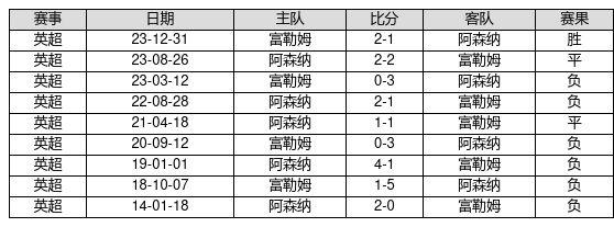 富勒姆 VS 阿森纳两队近10年的交战次数为9场,富勒姆1胜2平6负,赢球概率为11.1%,平局概率为22.2%,输球概率为66.7%。